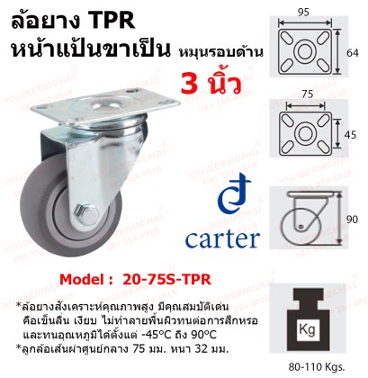 ล้อ TPR ล้อยางสังเคราะห์คุณภาพสูงที่ผสมผสานความยืดหยุ่นของยางเข้ากับความทนทานของพลาสติก มีคุณสมบัติเด่นคือเข็นลื่น เงียบ ไม่ทำลายพื้นผิว ทนต่อการสึกหรอ และทนอุณหภูมิได้ตั้งแต่ -45°C ถึง 90°C เหมาะสำหรับรถเข็นงานโรงงาน โรงแรม โรงพยาบาล, เฟอร์นิเจอร์, งานทางการแพทย์ และการใช้งานในร่ม