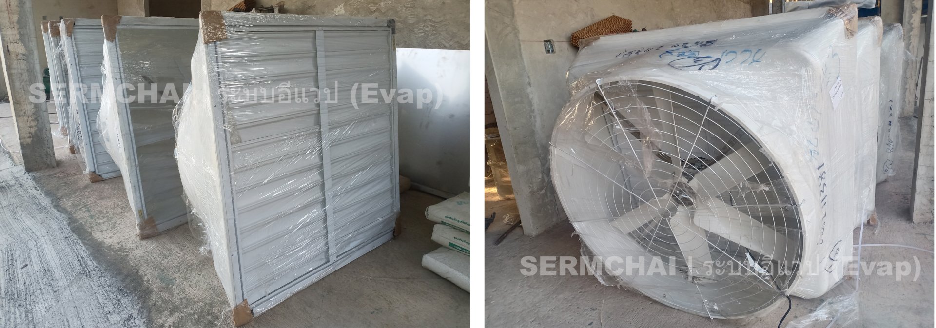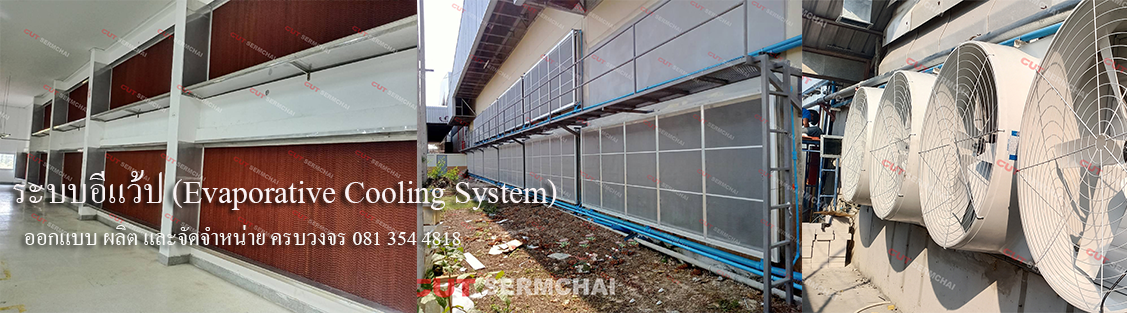 ระบบอีแว้ป (Evap) เป็นระบบระบายอากาศโดยอาศัยหลักการพ่นนํ้าลงไปบนแผง Cooling pad น้ำที่ไหลผ่านจะเป็นตัวทำความเย็น และจะมีพัดลมดูดอากาศออกจากโรงงานอีกด้านหนึ่ง ตัวโรงงานจะเป็นระบบปิดเพื่อให้อากาศเข้าได้ทางเดียวคือผ่านทางแผง Cooling Pad และอากาศถูกดูดด้วยพัดลมอีกฝั่งตรงข้าม ช่วยลดอุณหภูมิภายใน 5-8 องศาเซลเซียส