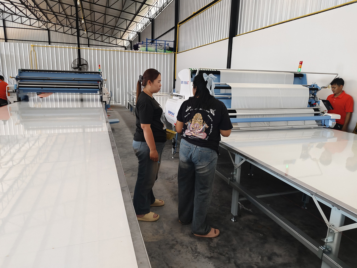 • เครื่องสามารถปรับความตึงผ้าหรือย่อนผ้านขณะทำการปู / Fabric expanding device:It can be adjusted according to the different width and tension of fabrics,making fabrics free from tension.