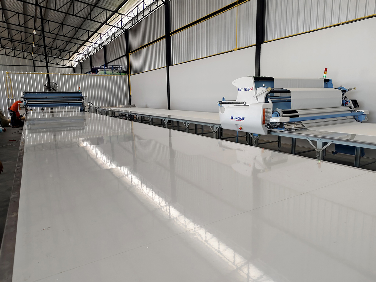 • ระบบขยายผ้าอัตโนมัติ / Automatic fabric expanding system.