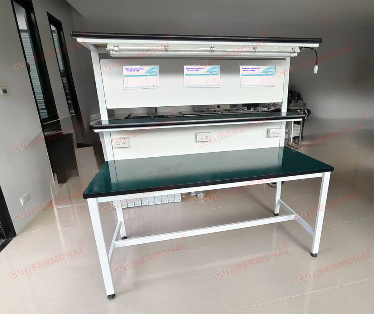 โต๊ะQC สำหรับตรวจงานอุปกรณ์ทางอิเล็กทรอนิกส์ ตรวจเช็คสินค้าทำงาน พร้อมชุดปลั๊กไฟ + หลอดไฟ LED
