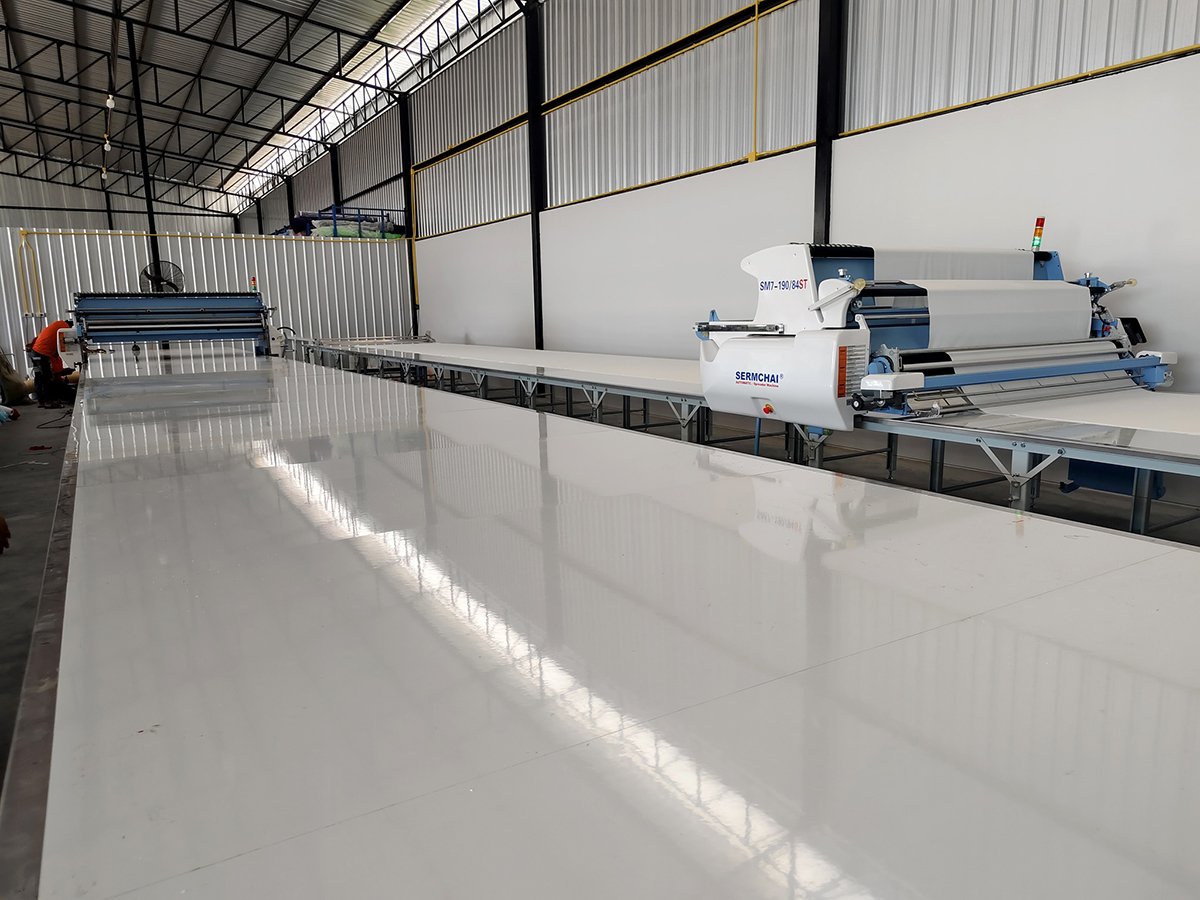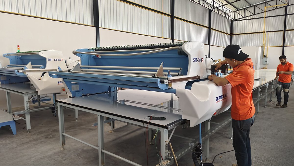 ควบคุมการทำงานด้วยหน้าจอแบบ แท็บเล็ตทัชสกรีน ตัวใหม่ล่าสุด เครื่องปูใช้งานง่าย ไม่ซับซ้อน สามารถปูได้หลากหลายเนื้อผ้า ตลอดจนหนังเทียม หรือ PU เบาะรถยนต์ ปูแบบชั้นต่อชั้น หรือปูแบบซิกแซก ใช้ได้ทั้งผ้าม้วน ผ้าพับ ผ้าผ่า หรือผ้าถุงกลม