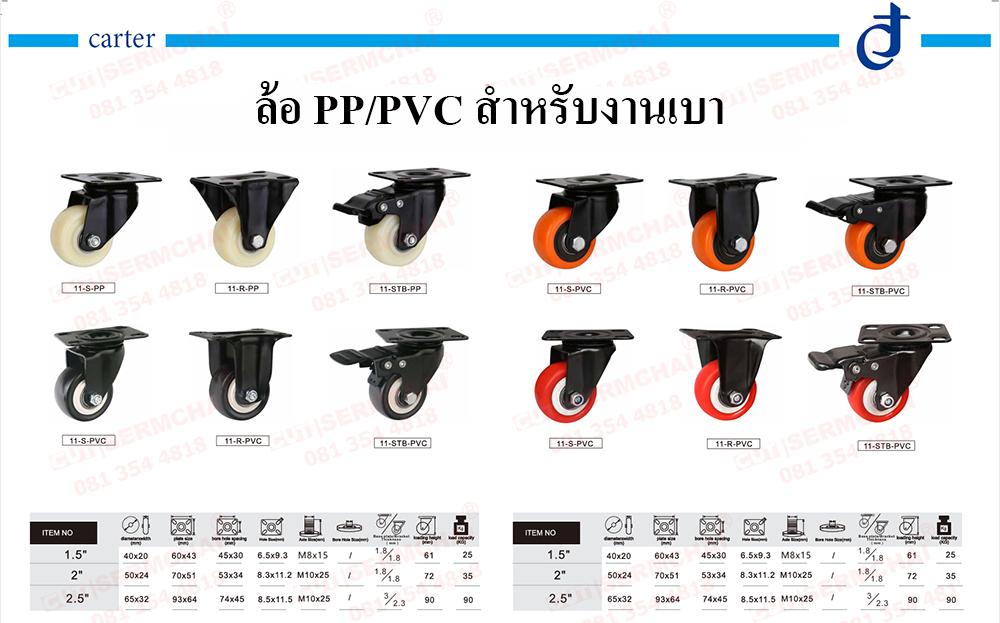 ลูกล้ออเนกประสงค์ ลูกล้อพลาสติกประเภทเทอร์โมพลาสติก (Thermoplastic) ที่น้ำหนักเบา แข็งแรง ทนความร้อนสูง (160–170 °C) นิยมใช้ผลิตบรรจุภัณฑ์อาหาร (Food Grade), ขวดนม, อุปกรณ์ทางการแพทย์, และชิ้นส่วนยานยนต์ รถเข็นทุกชนิด และโรงงานอุตสาหกรรม.